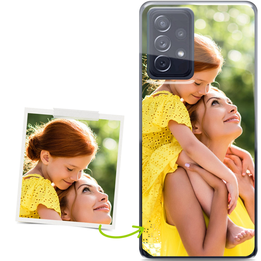 Morbida trasparente: La cover personalizzata Galaxy A72 5G è fatta di un materiale morbido con i bordi trasparenti, avvolge perfettamente il tuo smartphone lasciando liberi tasti e connettori.