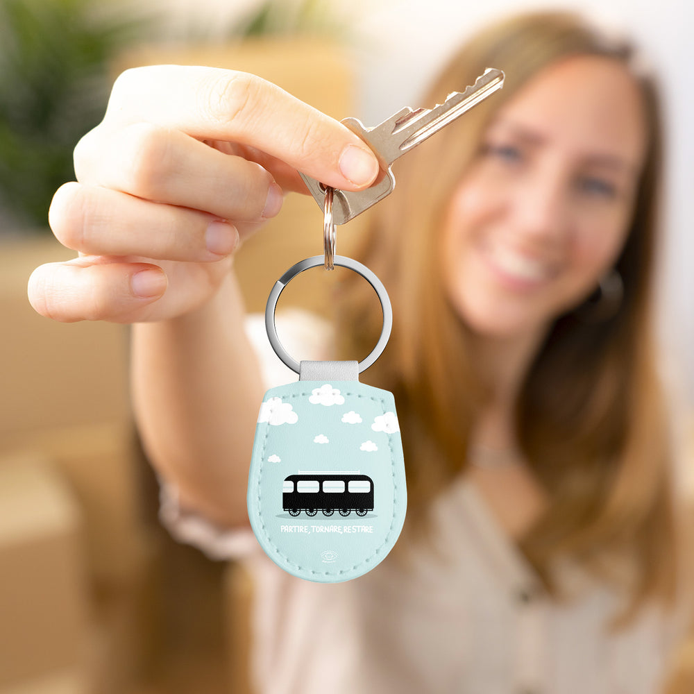 Portachiavi in pelle Partire, tornare, restare dell'album Portami con te di Donnie con anello in metallo, Disponibili in 6 Colori, Stampa di Alta Qualità