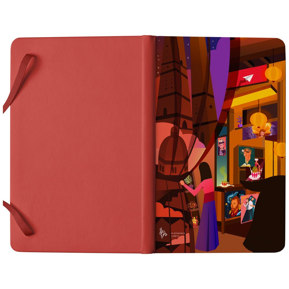 Taccuino Bologna Tokyo dell'album Japan Vibes Taccuini di Alessandra Loreti: copertina soft touch in 8 colori, con chiusura e segnalibro coordinati