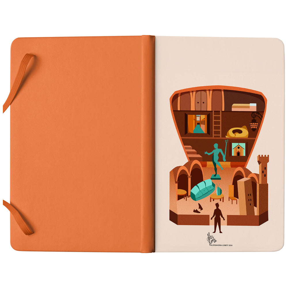 Taccuino Bologna dell'album Viaggi Illustrati di Alessandra Loreti: copertina soft touch in 8 colori, con chiusura e segnalibro coordinati