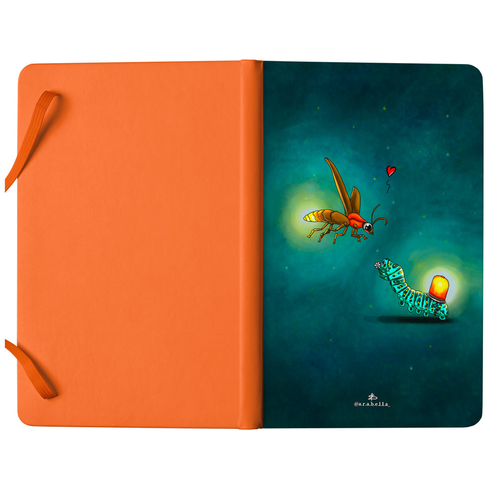 Taccuino Per amore lucciola dell'album Amore in taccuini di Arabella: copertina soft touch in 8 colori, con chiusura e segnalibro coordinati