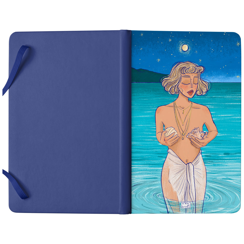 Taccuino La luna dell'album Thinker su carta di Charlotte Le Bleu: copertina soft touch in 8 colori, con chiusura e segnalibro coordinati