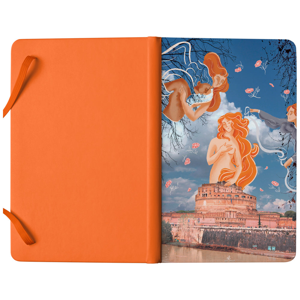 Taccuino Roma dell'album Taccuini per viaggiare (anche con la mente) di Elisa Lanconelli: copertina soft touch in 8 colori, con chiusura e segnalibro coordinati