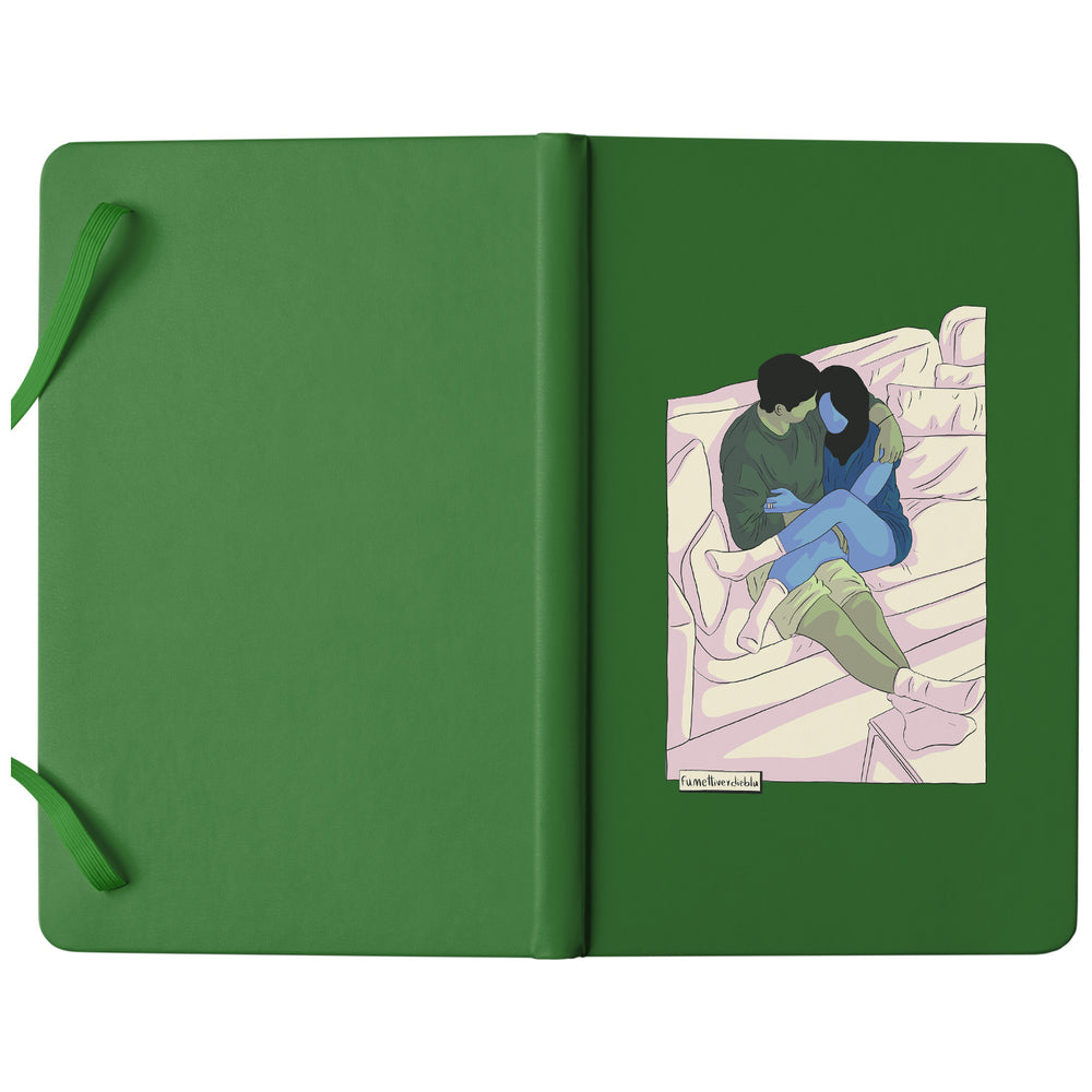 Taccuino Divano dell'album Taccuini Verdi e Blu di Fumettiverdieblu: copertina soft touch in 8 colori, con chiusura e segnalibro coordinati
