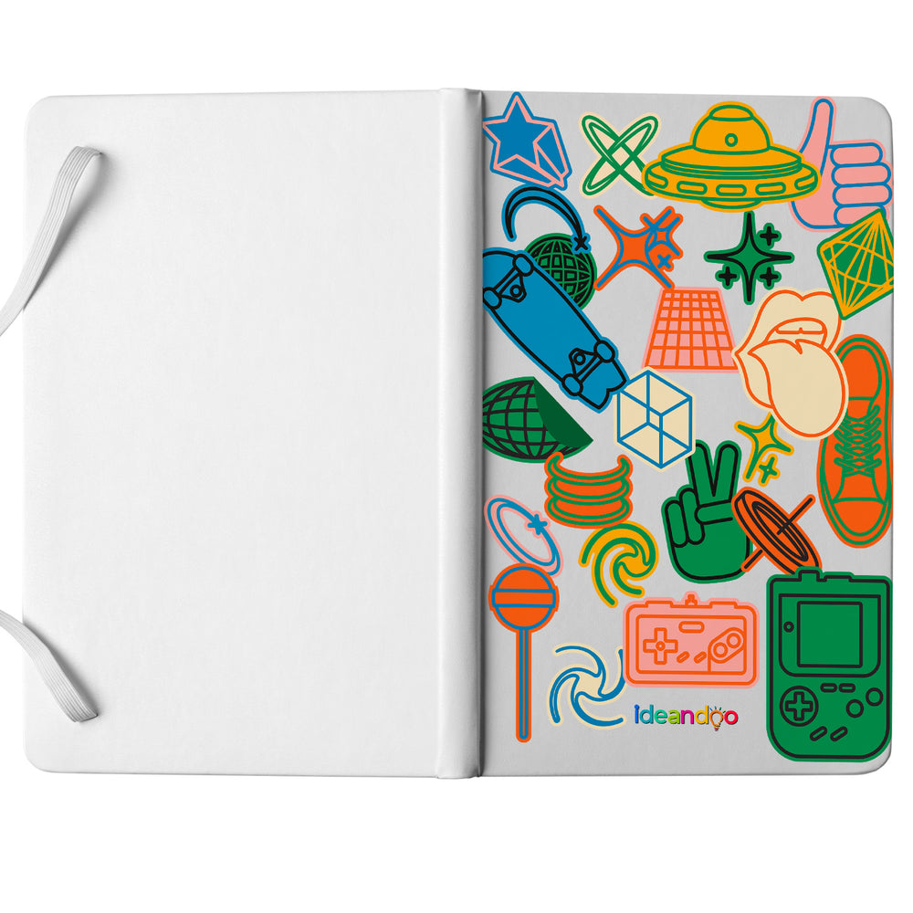 Taccuino The wild 80's dell'album Sticker di Ideandoo: copertina soft touch in 8 colori, con chiusura e segnalibro coordinati