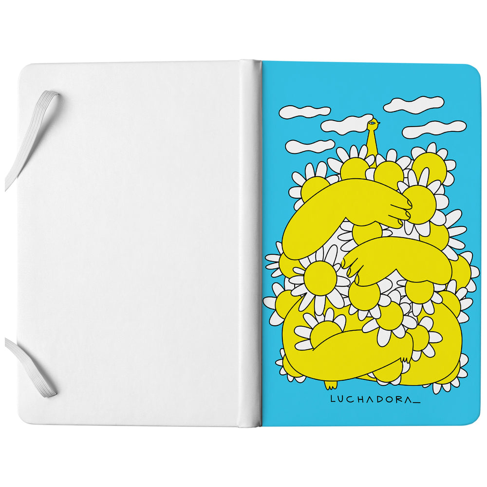 Taccuino Fiori e abbracci dell'album TADAN! di LUCHADORA: copertina soft touch in 8 colori, con chiusura e segnalibro coordinati