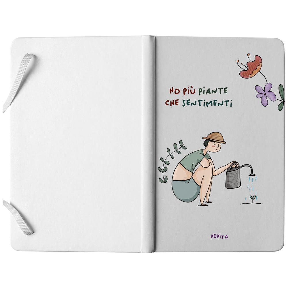 Taccuino Piante dell'album Taccuini a caso per gente speciale di PEPITALAND: copertina soft touch in 8 colori, con chiusura e segnalibro coordinati