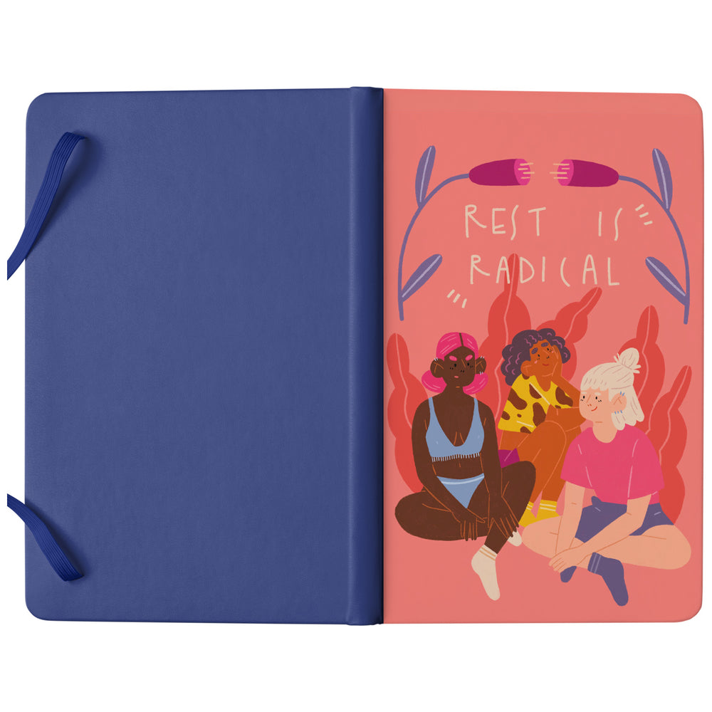 Taccuino Rest is Radical dell'album Lo scrivo qui così mi ricordo di Tigre contro Tigre: copertina soft touch in 8 colori, con chiusura e segnalibro coordinati
