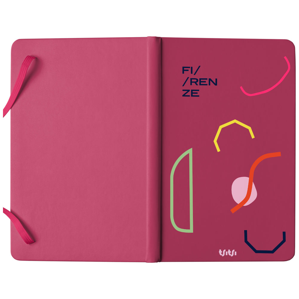 Taccuino FIRENZE dell'album Mapperó di TSITSI CONCEPT: copertina soft touch in 8 colori, con chiusura e segnalibro coordinati