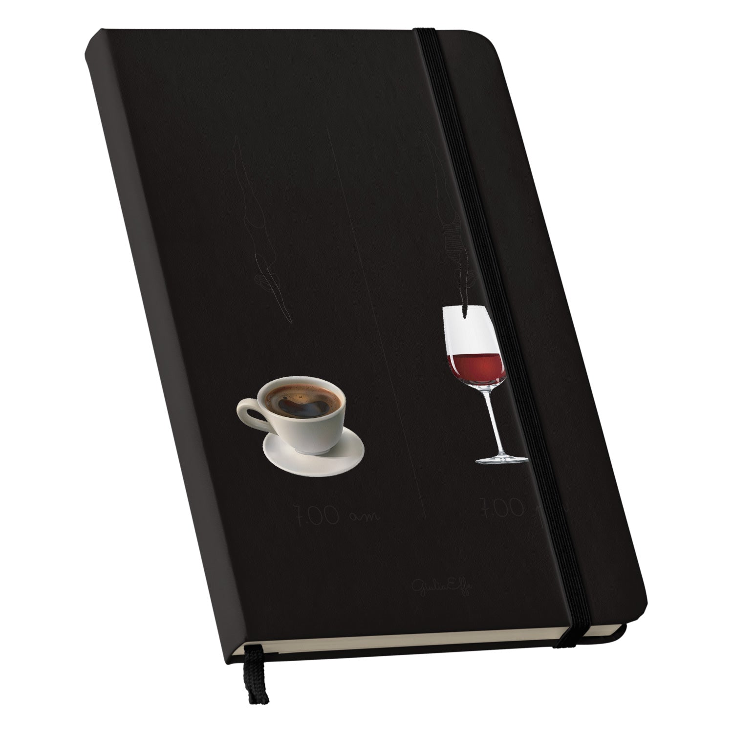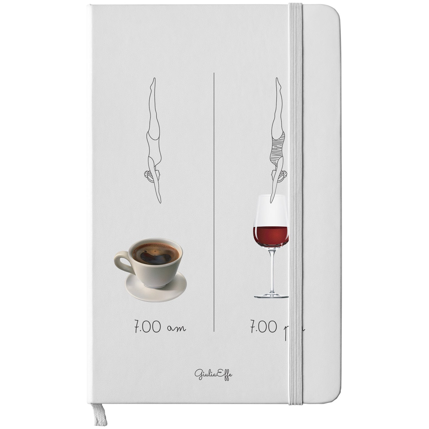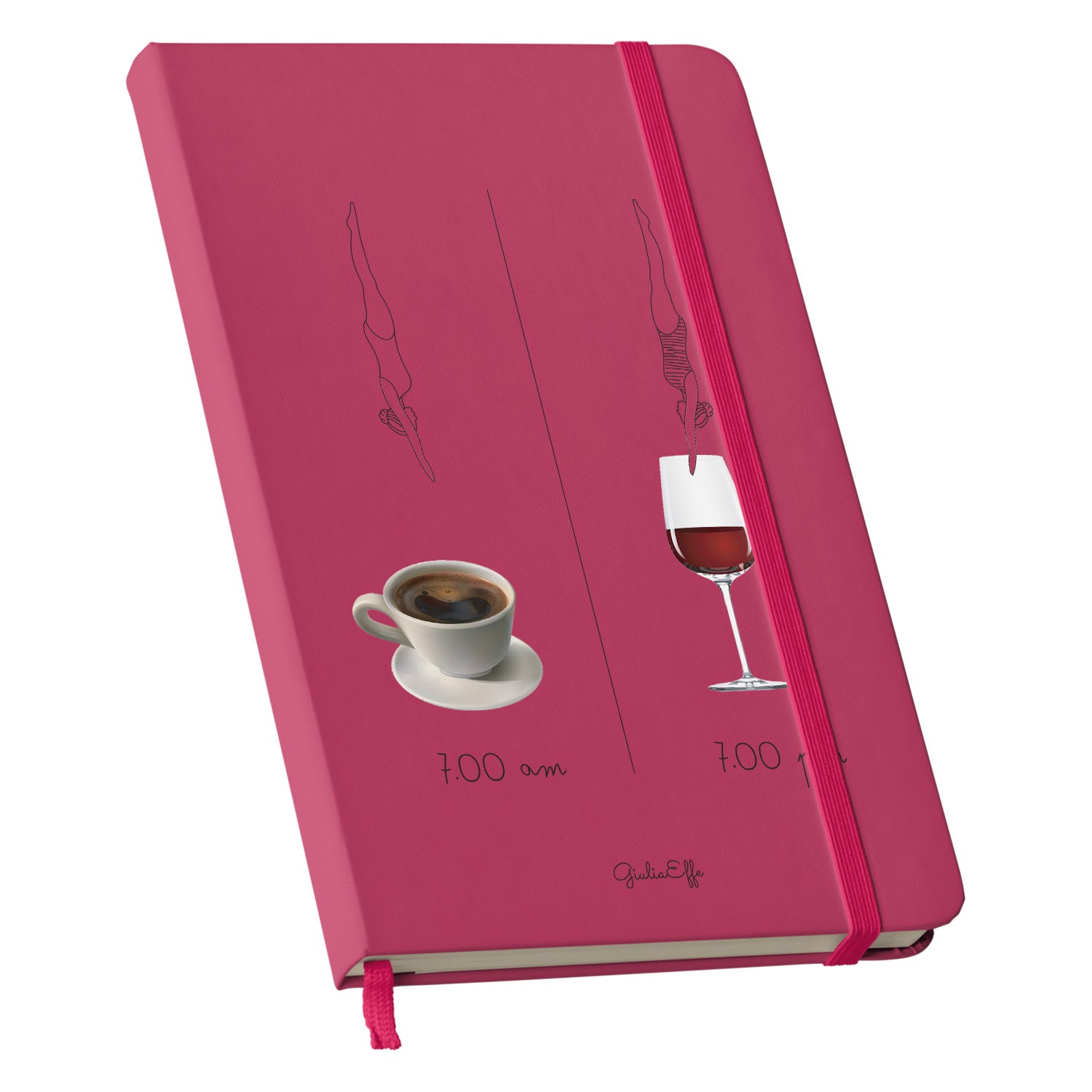 Taccuino 7 am 7 pm dell'album Creatività su carta di GiuliaEffe: copertina soft touch in 8 colori, con chiusura e segnalibro coordinati