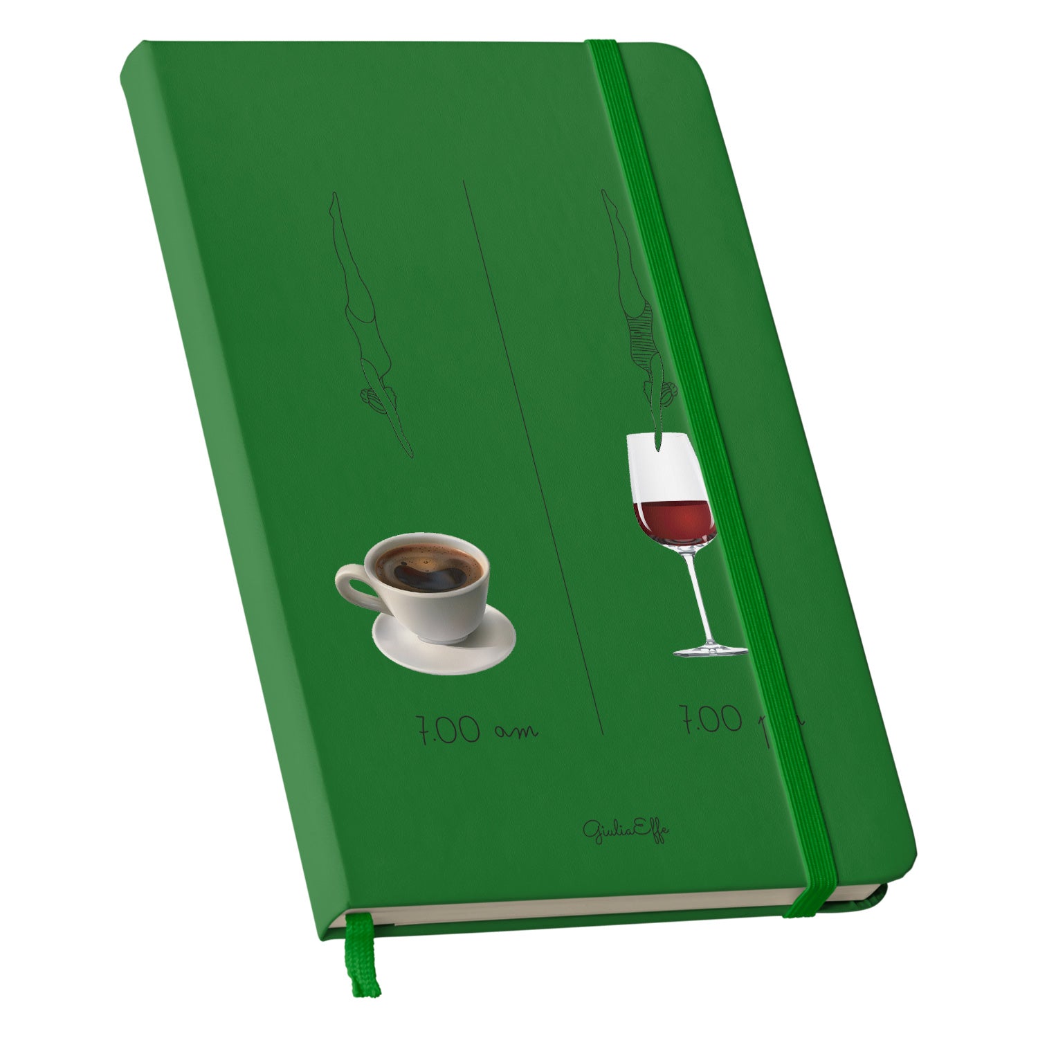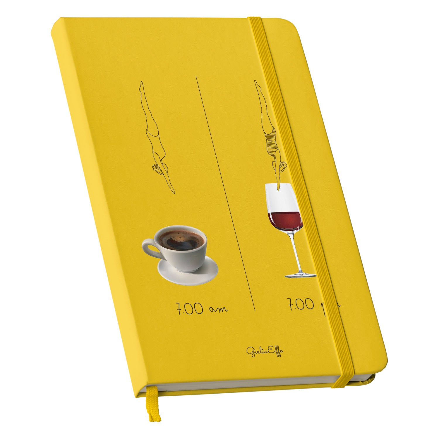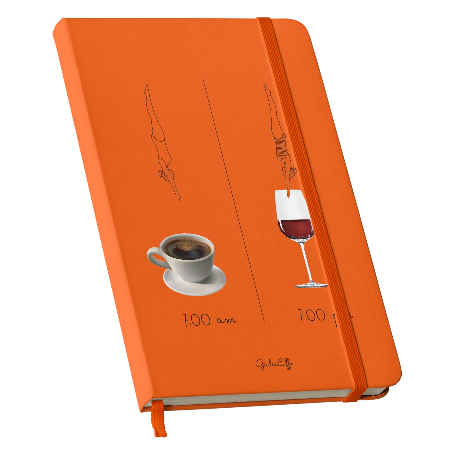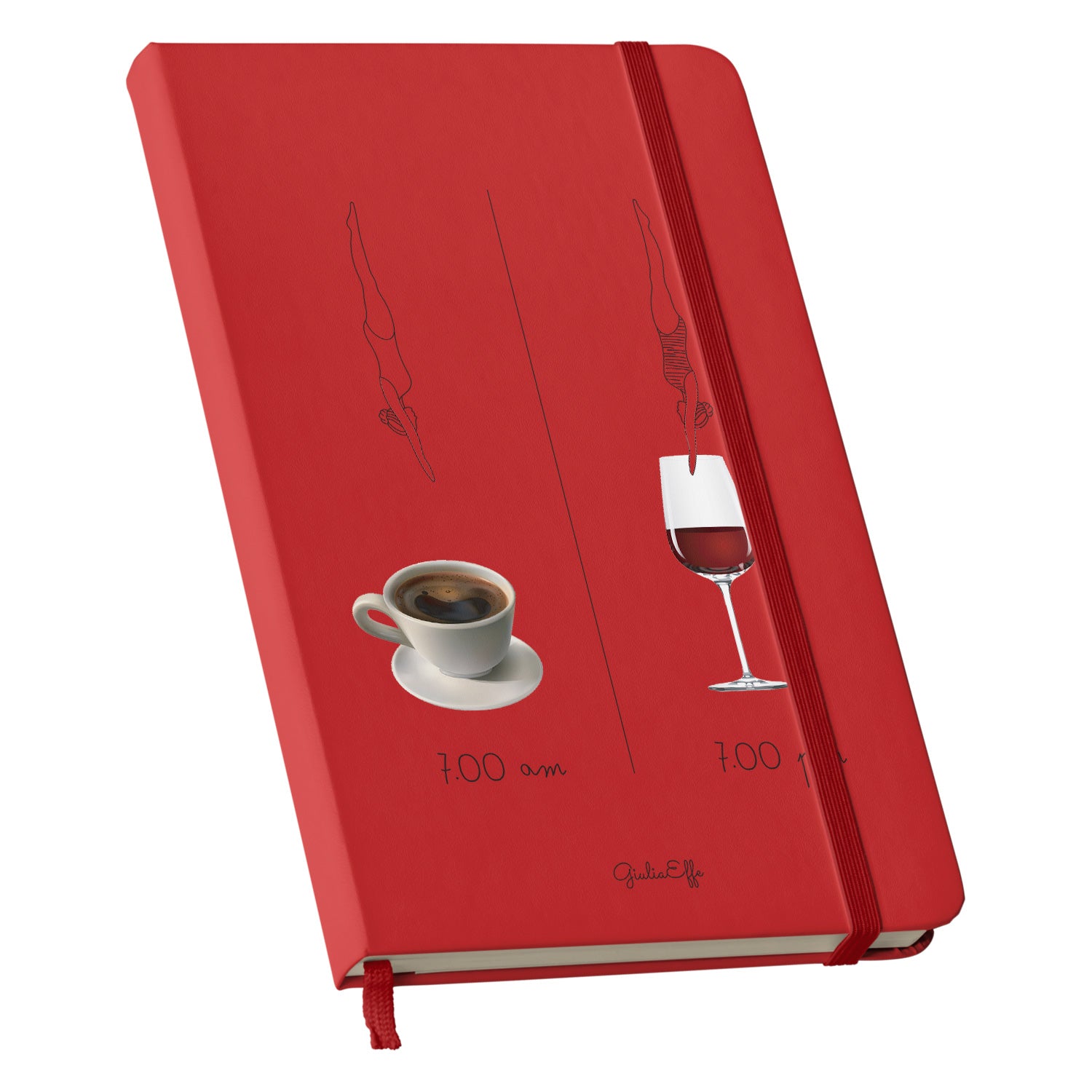 Taccuino 7 am 7 pm dell'album Creatività su carta di GiuliaEffe: copertina soft touch in 8 colori, con chiusura e segnalibro coordinati