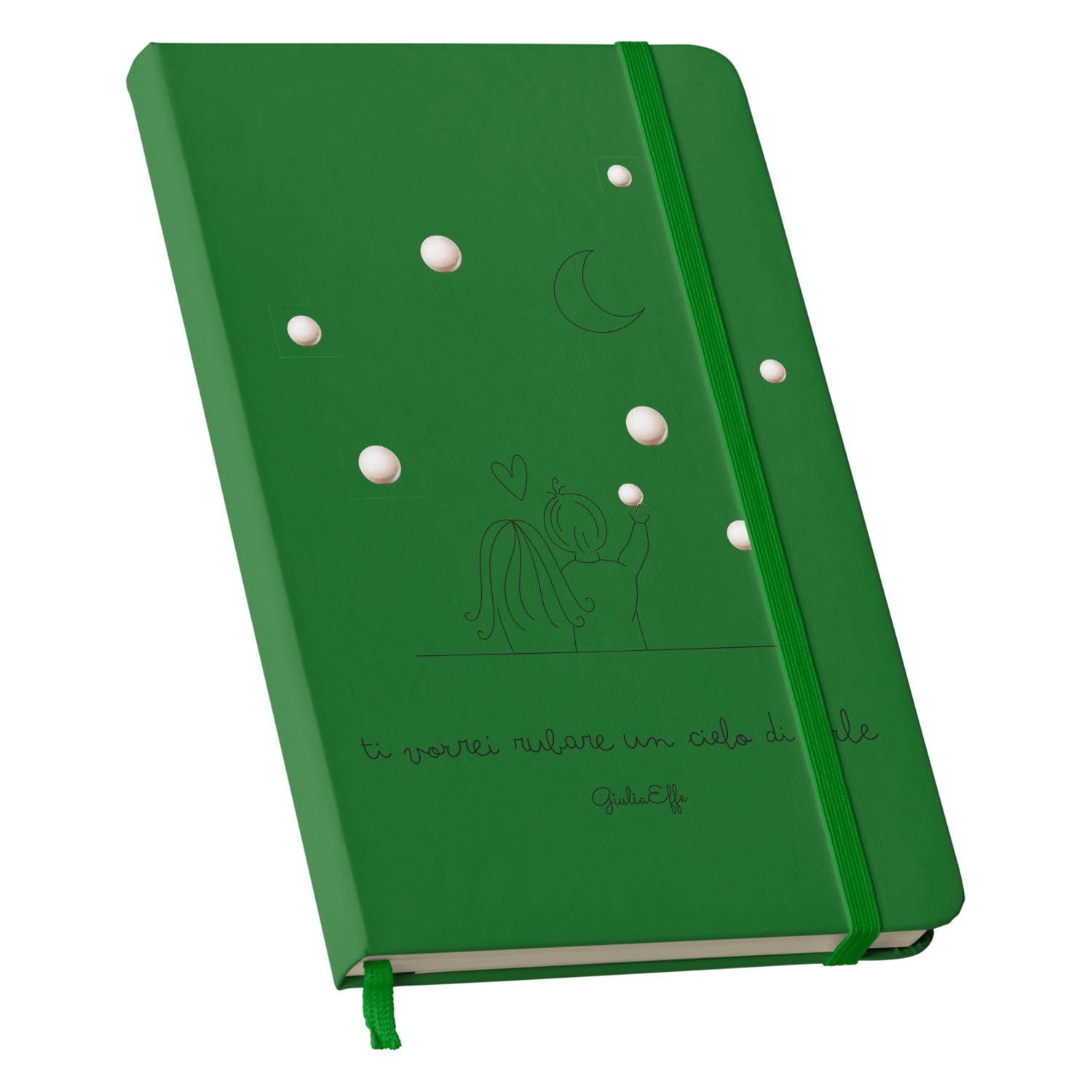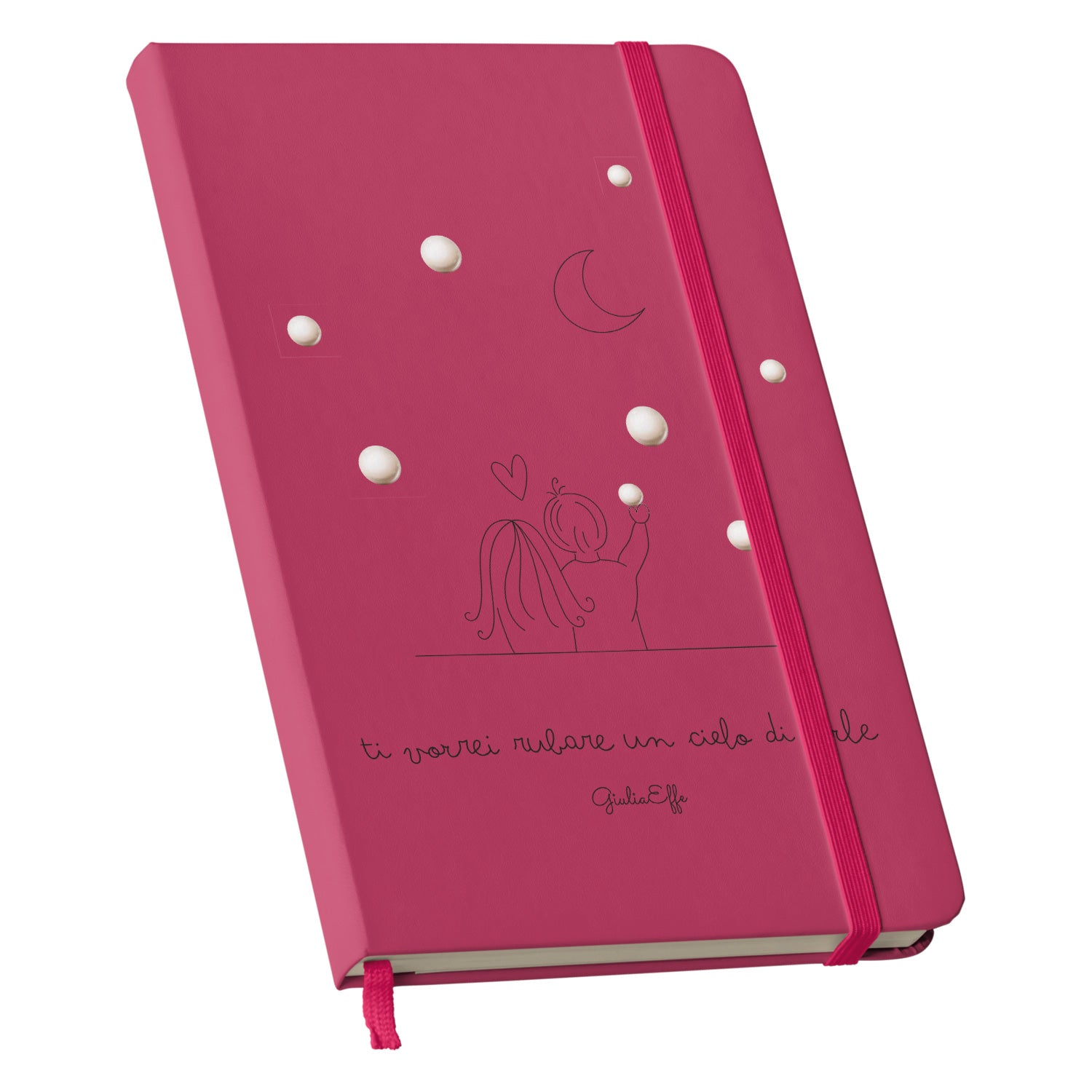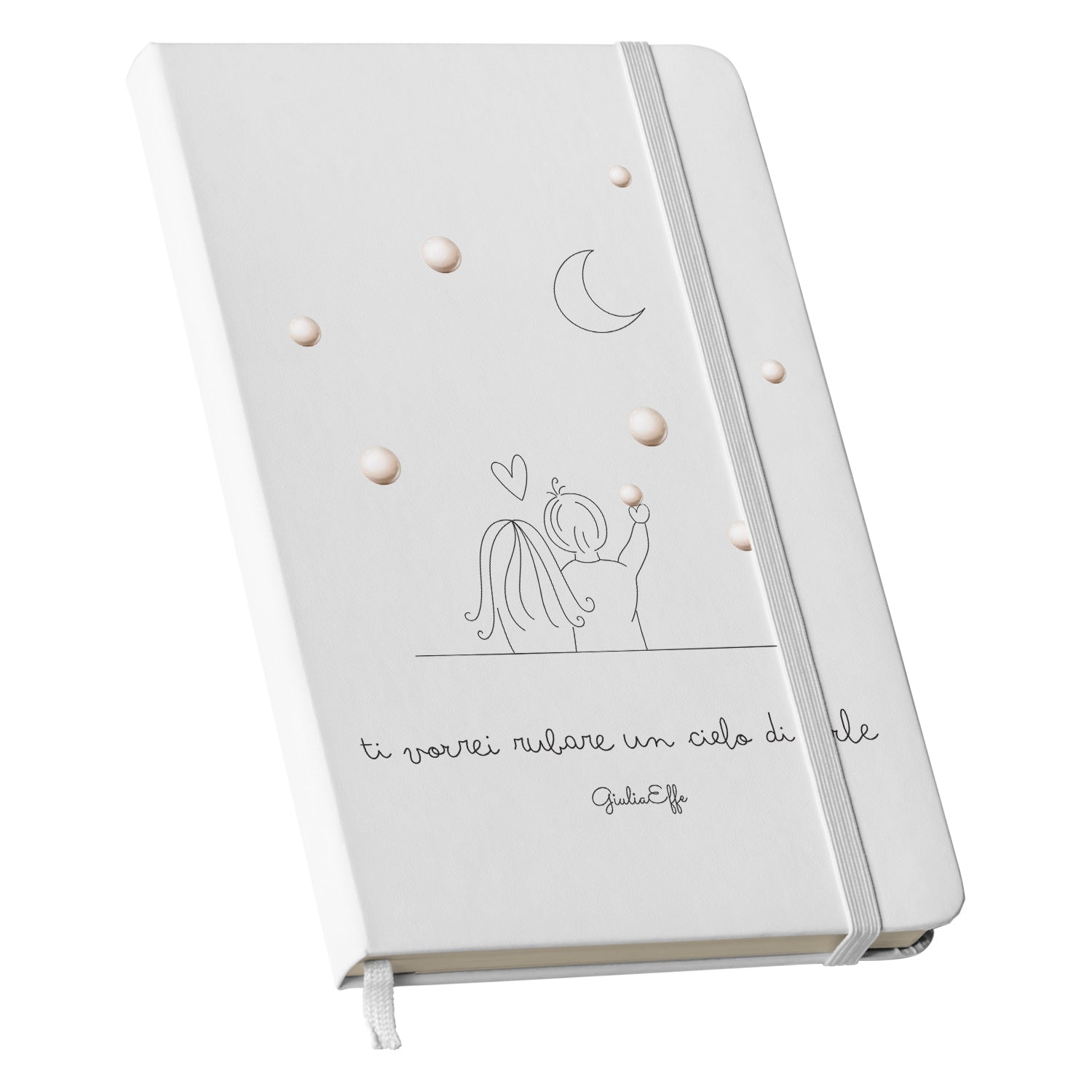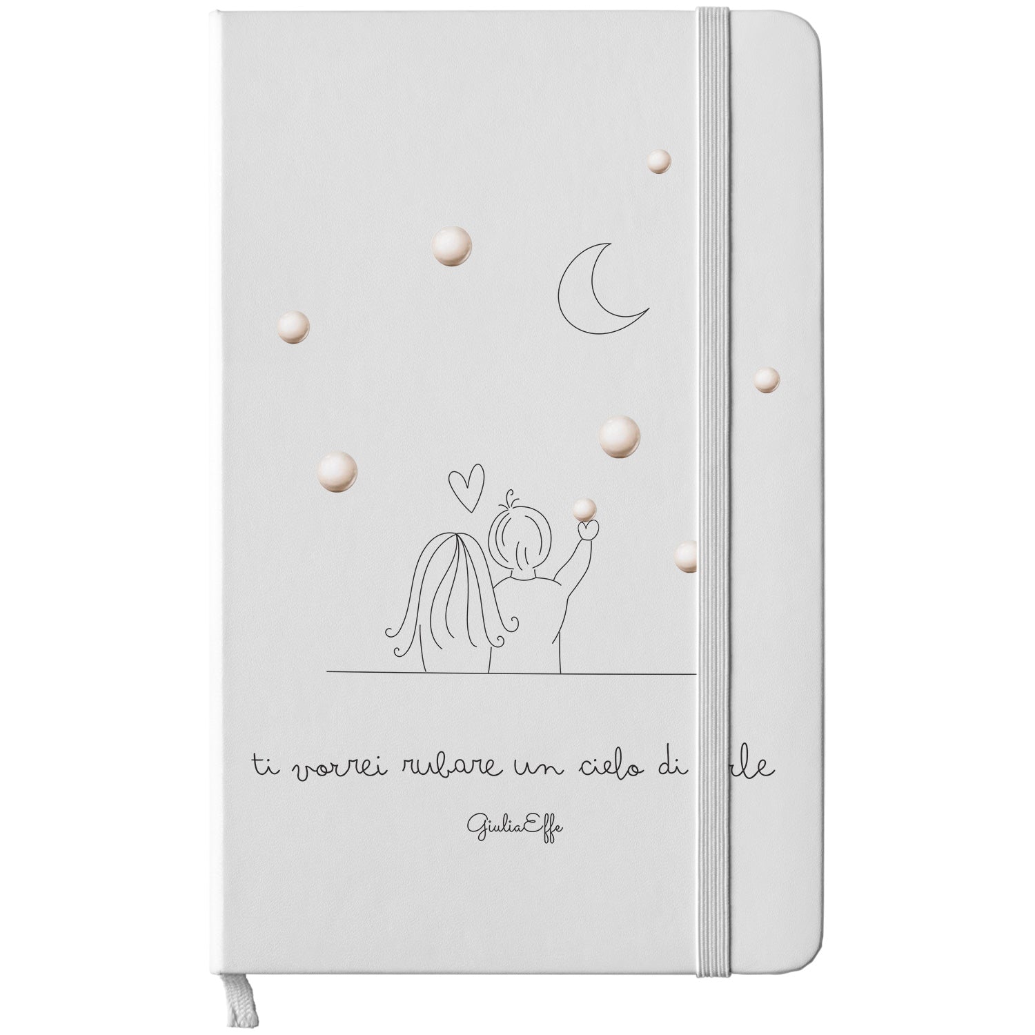 Taccuino Un cielo di perle dell'album Creatività su carta di GiuliaEffe: copertina soft touch in 8 colori, con chiusura e segnalibro coordinati